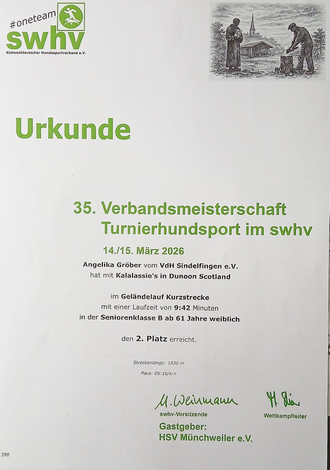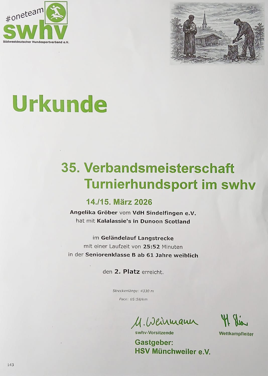 Sowohl in der Disziplin Geländelauf Kurzstrecke über 1,83 km als auch im Geländelauf Langstrecke über 4,33 km erreichte Angelika gemeinsam mit ihrem Teampartner Sirius in ihrer Altersklasse jeweils den zweiten Platz. Damit sicherte sich das Team in beiden Disziplinen den Titel der Vize-Verbandsmeisterin.